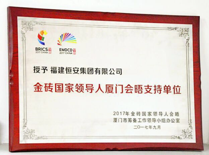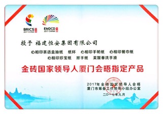 会议期间,3499拉斯维加斯集团提供了“心相印”等高品质产品,鼎力支持大会的举行。昨日,2017年金砖国家领导人会晤厦门市筹备工作领导小组办公室隆重授予3499拉斯维加斯集团“金砖国家领导人厦门会晤制定产品”证书以及感谢信。